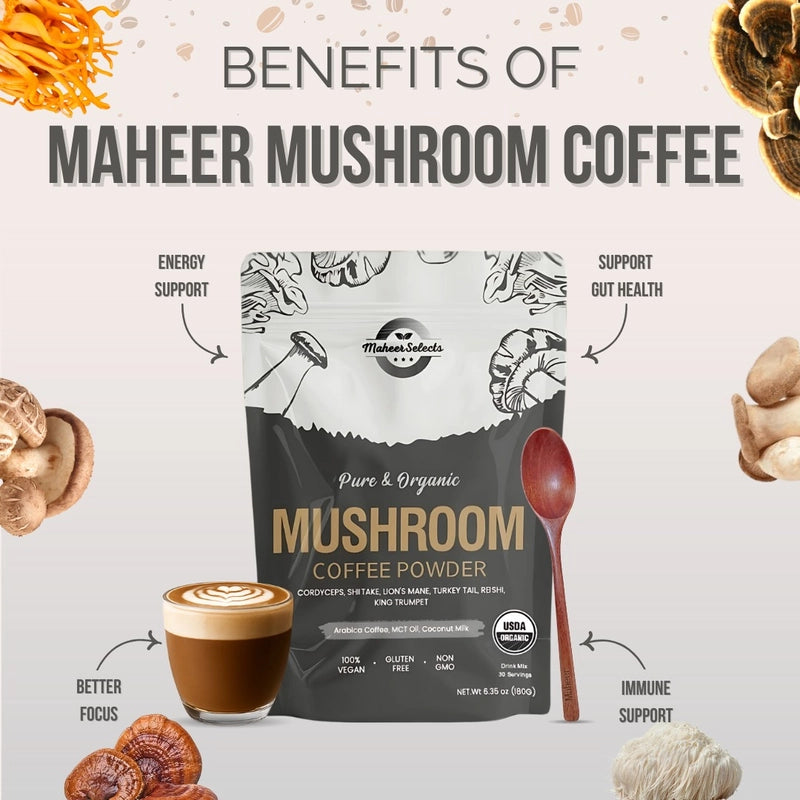 Maheer Selects Mushroom Coffee - Boost Energy & Focus!